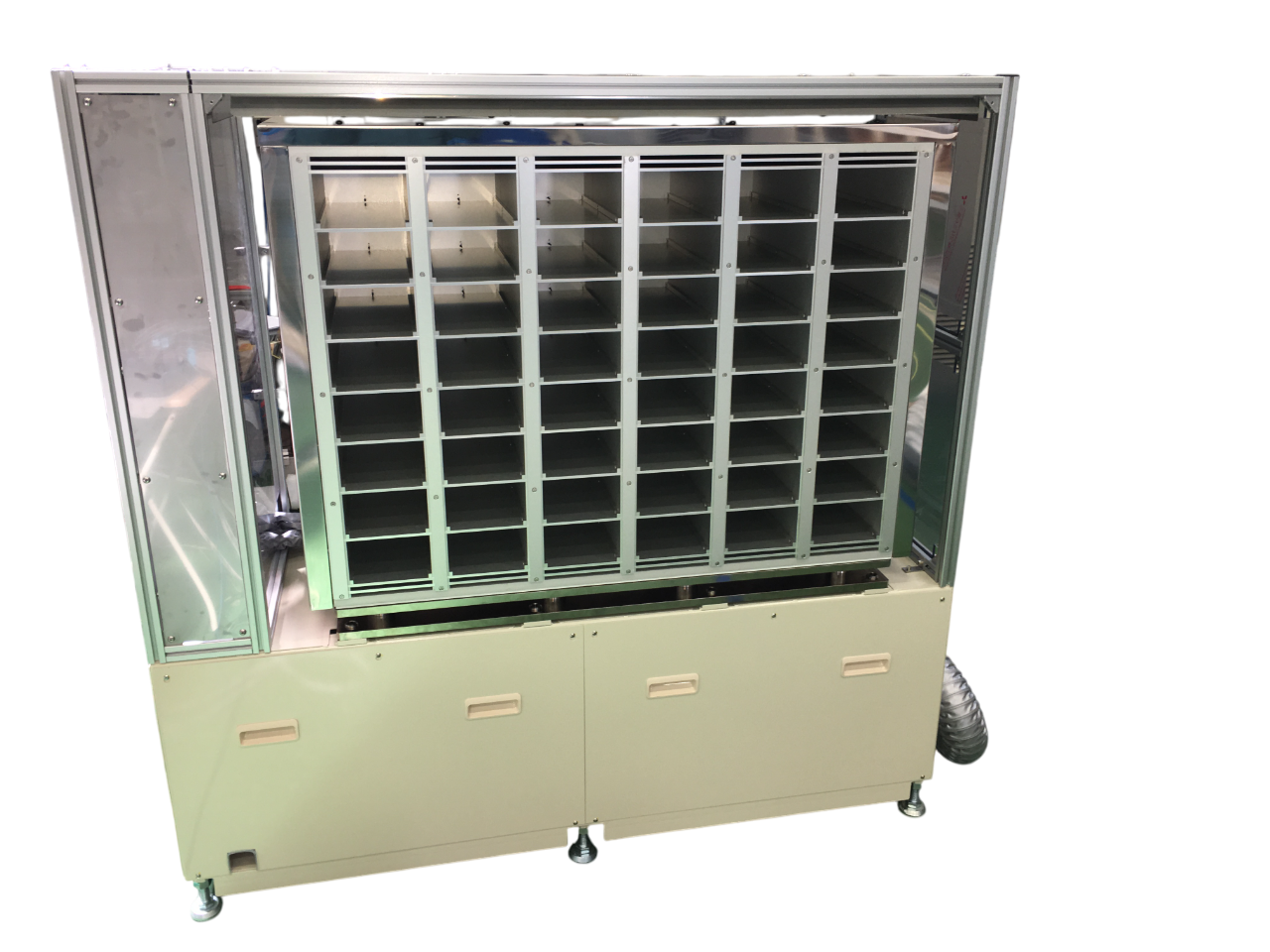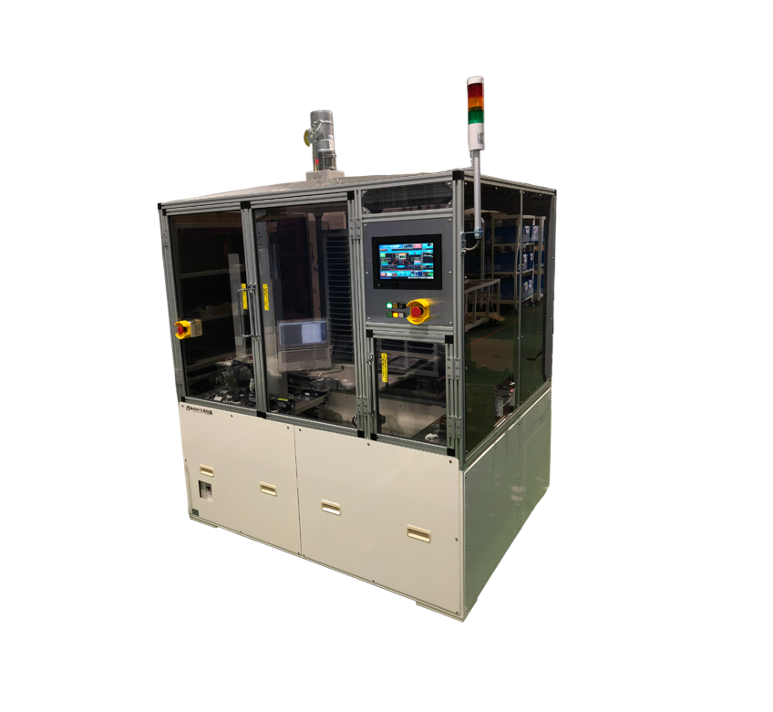 | 供給、排出及び収納部 | ローダー、アンローダーを専用設計する事により様々なインライン仕様に対応可能。 ・マガジン to マガジン ・コンベア to コンベア ・マガジン to コンベア ・コンベア to マガジン さらにバッファーを設ける事で前後装置とのタクト差の緩衝できる。 |