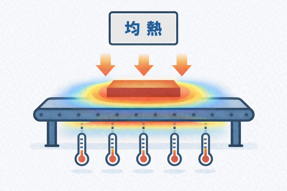 伝熱、伝達、輻射の3加熱方式により、省エネで且つ均熱を実現。