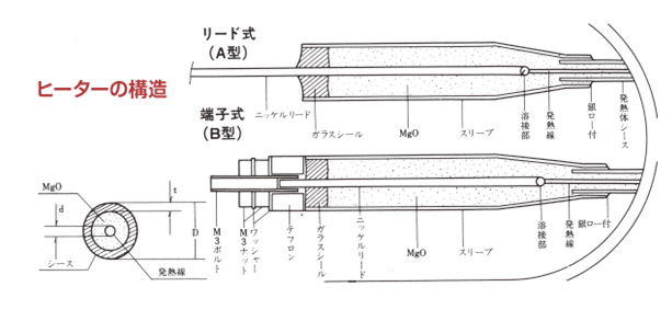 マイクロヒーターは、シース外形によって1m当たりの抵抗値が決められております