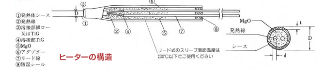 I型タイプのマイクロヒーター 200Vφ3.2のタイプで500Wのものが必要な場合の長さ