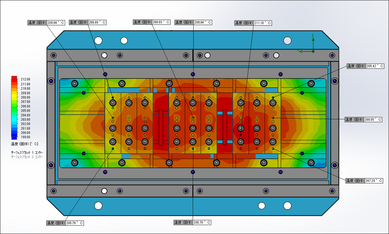 ヒーターブロックの表面温度分布の解析を実施し、その結果に基づいた設計変更やヒーター仕様変更に関するご提案も可能です。